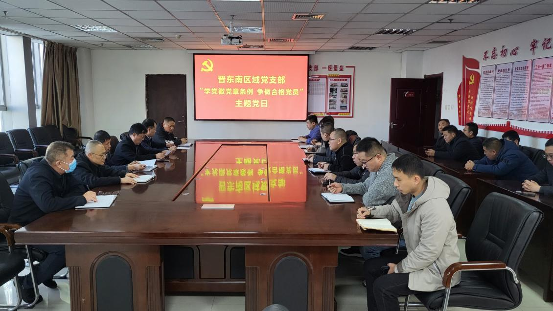 11月27日,山煤國際晉東南區(qū)域黨支部開展“學(xué)黨徽黨旗條例 爭做合格黨員”主題黨日活動,支部書記王曉東主持,全體黨員干部職工參加。