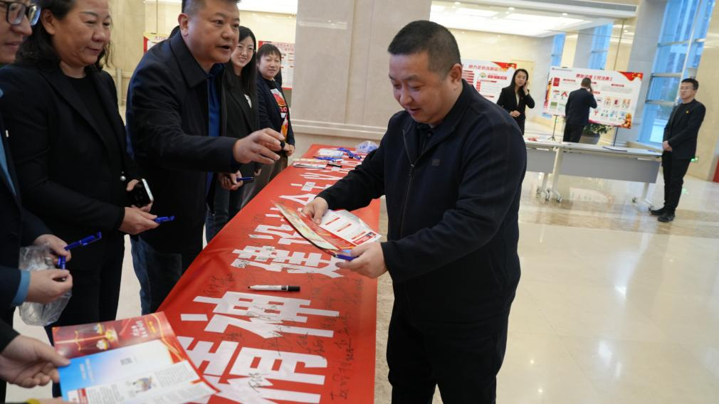 12月4日國家憲法日當天,系列宣傳活動被推向高潮。山煤國際在本部辦公樓大廳設立專區,通過宣傳展板、LED電子屏、派發資料等方式普及法律知識,開展憲法宣誓活動、紀法銜接教育、現場簽名和知識競答,并在活動現場提供法律咨詢服務。教育引導廣大干部員工進一步提升守法意識,增強用法能力,堅決抵制違紀違法行為,養成積極健康的生活方式。活動現場,大家踴躍參與,共發放宣傳資料400余份,提供咨詢服務50余人次,取得了良好效果。