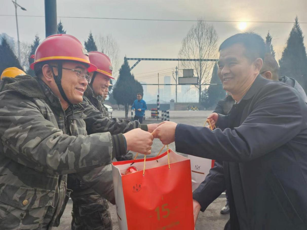 2月10日,農歷大年初一,坊煤業黨委書記、董事長李忠杰,經理、礦長李斌勝攜班子成員一道深入礦區門崗、調度指揮中心、副井口、35kv變電站、裝車站、北翼回風立井、凱德世家等地,看望慰問春節期間仍然堅守在工作崗位上的員工們,向忙碌在崗位上的員工拜年,感謝大家在過去的一年里為公司安全環保、提質增效、改革發展等各項工作中作出的貢獻,向他們送去了公司黨政的關心關懷和新春祝福。